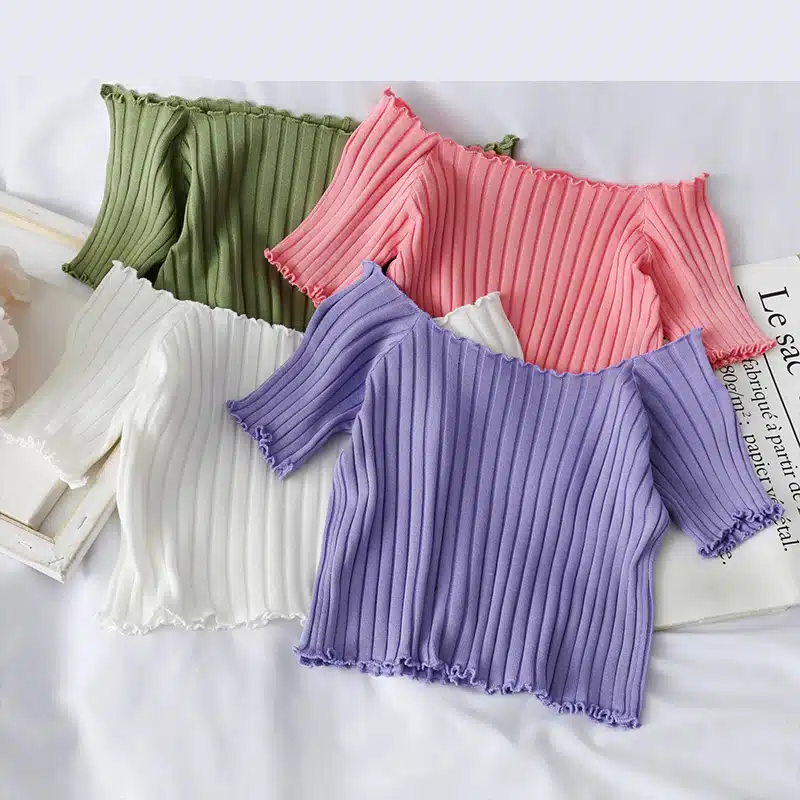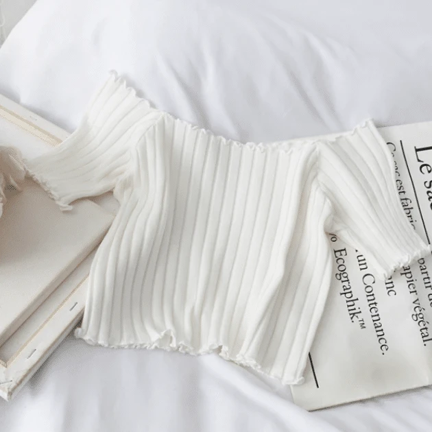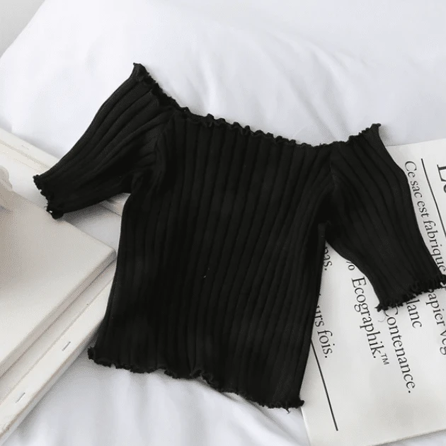 Vous allez adorer ce sublime petit t-shirt crop top vintage à épaules dénudées et petits froufrous pour femme. Disponible en plusieurs coloris, ce top est doux et agréable à porter pour votre plus grand bonheur.