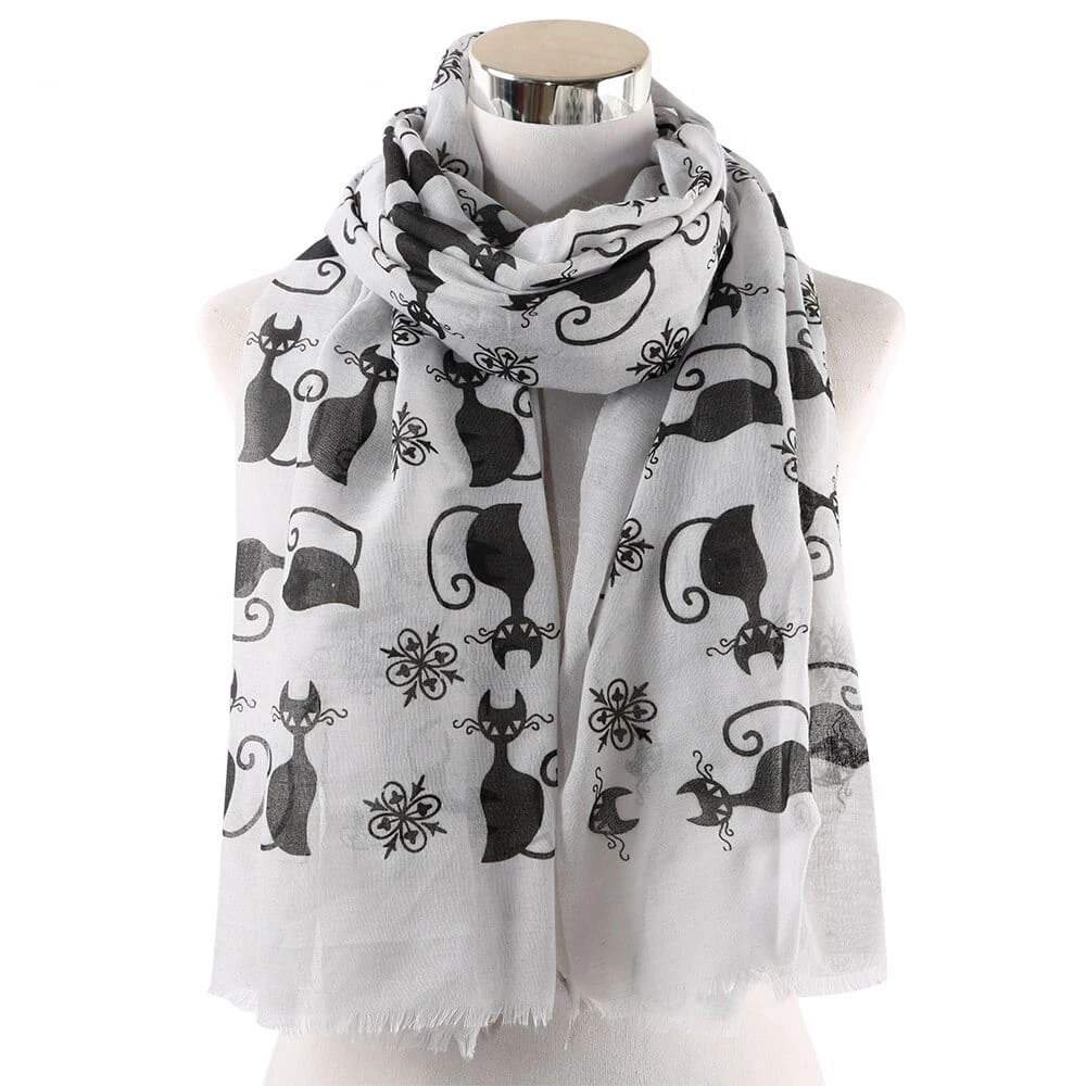 Cette magnifique écharpe vintage à motif de chat est parfaite pour tous les amoureux des chats.