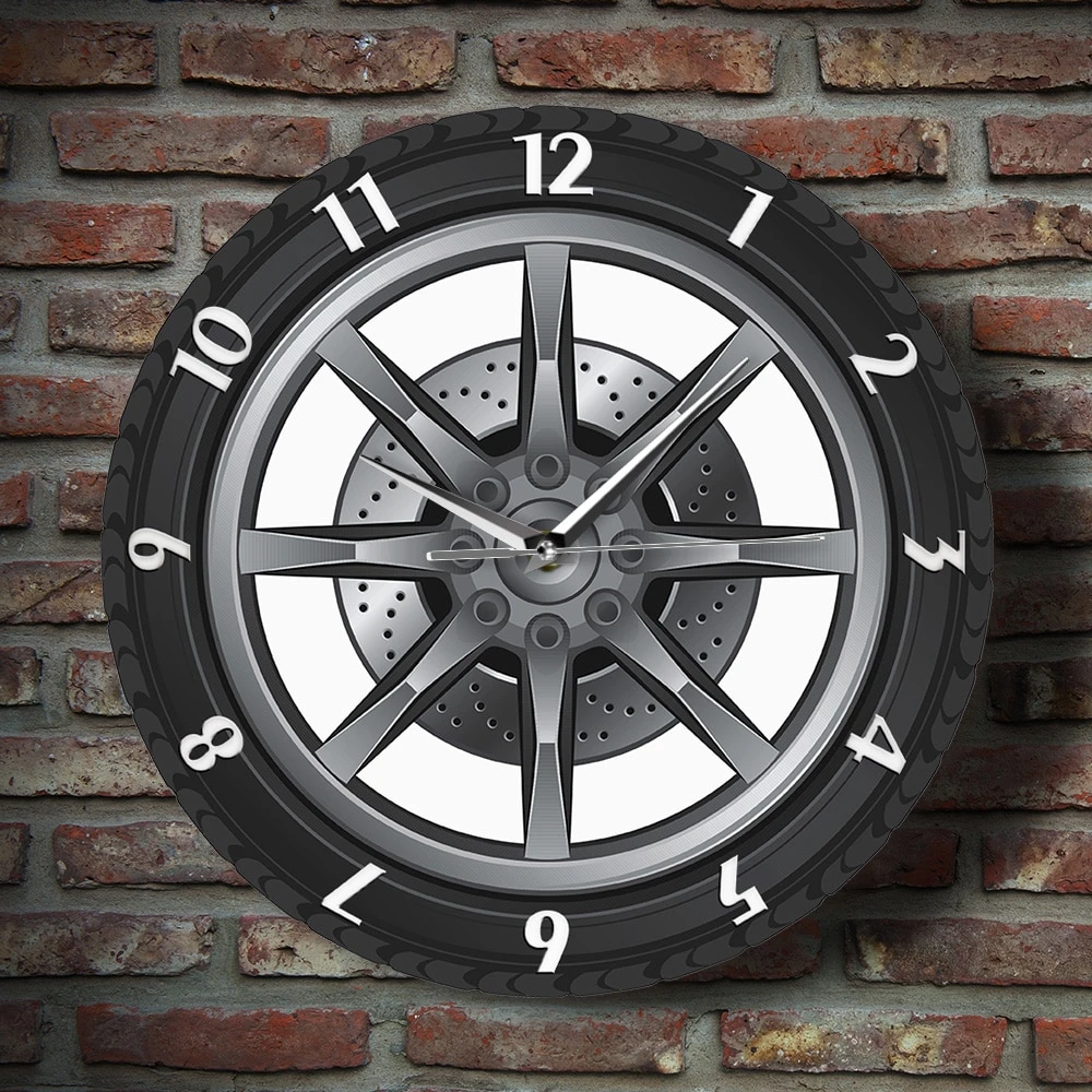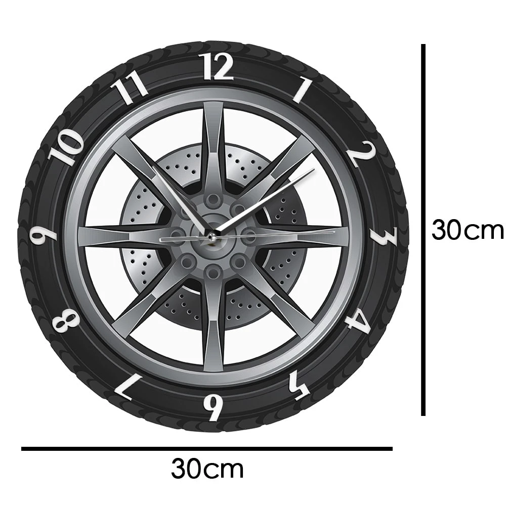 Elle présente un design de roue de pneu avec un mouvement de montre automatique, et est fabriquée en plastique acrylique durable. Cette horloge nécessite une pile AA (non incluse) et constitue une superbe décoration.