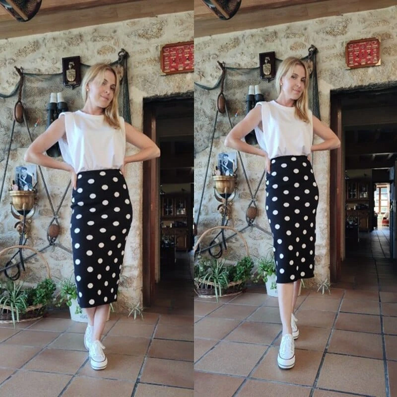 Adoptez cette sublime et indémodable jupe crayon tricotée à pois pour femme pour un style authentique et tendance vintage qui vous ira à merveille ! Une matière élasthanne et agréable qui s’adapte parfaitement à votre morphologie pour dessiner et mettre en valeur votre silhouette !