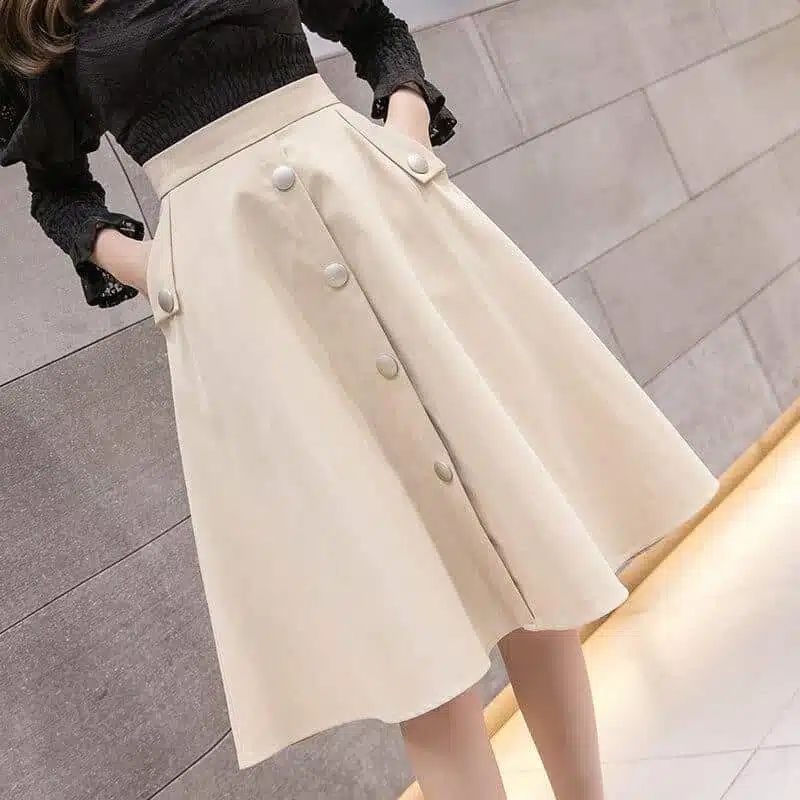 Ne cherchez pas plus loin que cette jupe vintage mi-longue. Elle est fabriquée dans un tissu doux de couleur unie et présente un design simple. Elle est simple, mais élégante et la taille haute lui donne un effet amincissant.