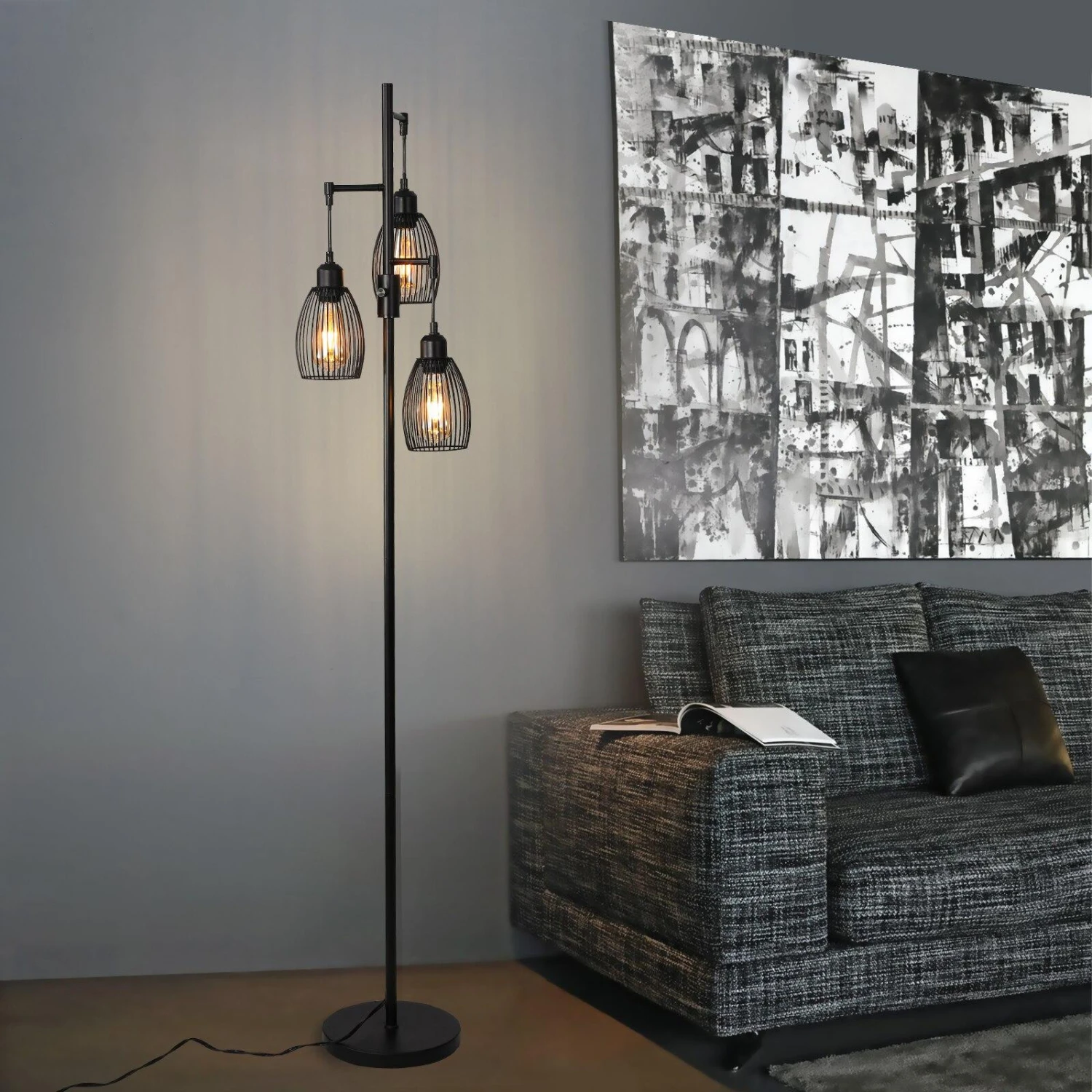 Créez une atmosphère chaleureuse et rétro dans votre intérieur avec ce lampadaire vintage industriel avec 3 abat-jour suspendus. Facile à déplacer, vous pourrez l’installer partout où vous voulez dans votre intérieur.