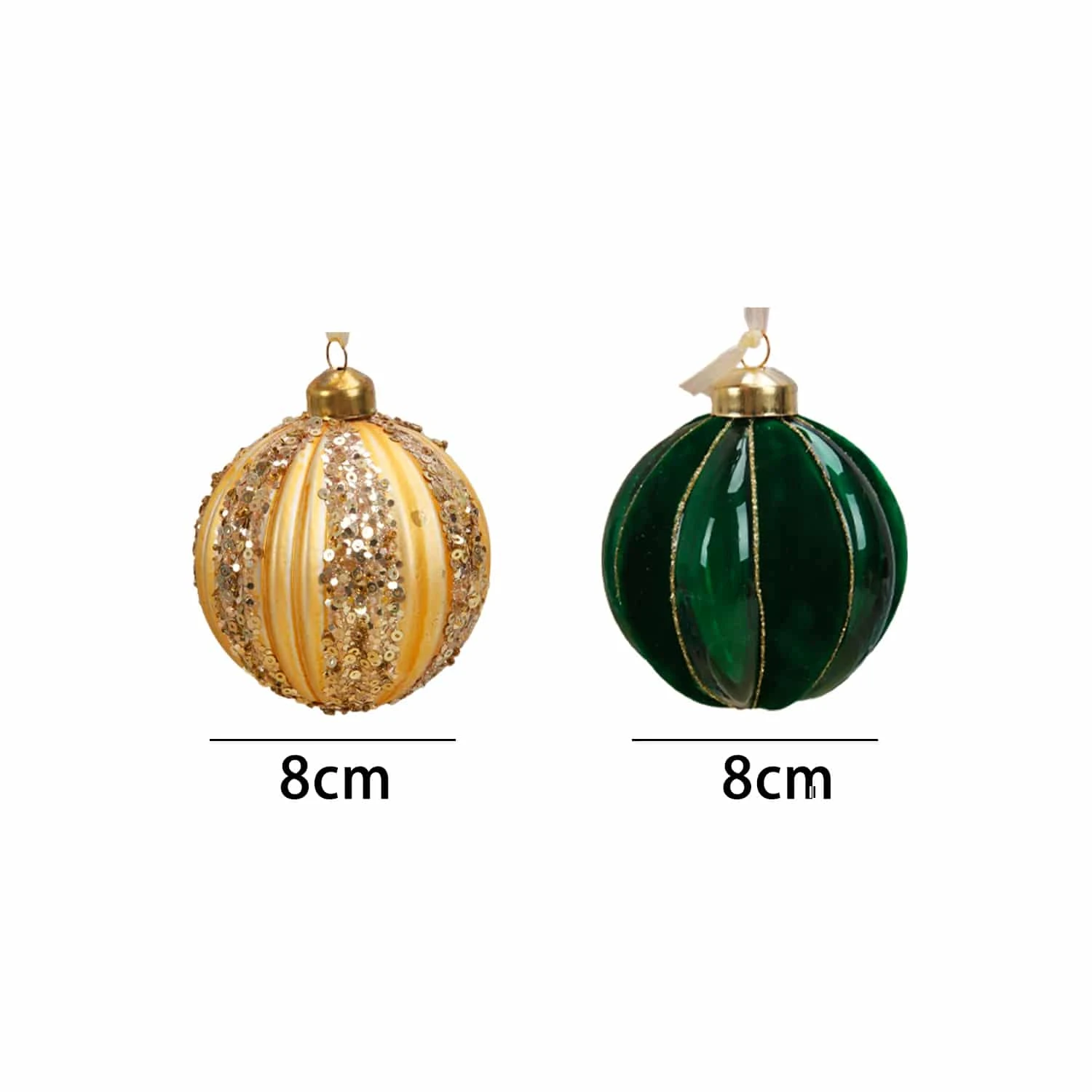 Revivez l’esprit de Noël authentique et élégant avec ce lot de deux boules de Noël en verre. La couleur sobre vert sapin donne une touche de nature tandis que la boule dorée ajoute de la lumière grâce à ces sequins reflétant la lumière.