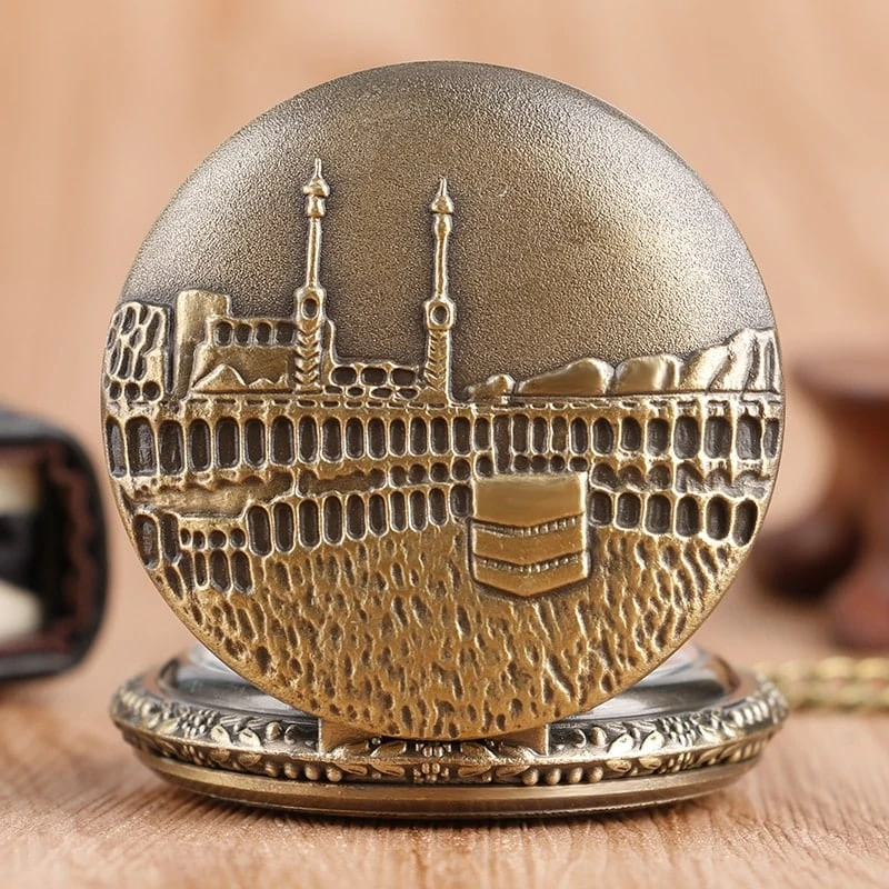 Cette montre à gousset avec motif Mecque est un garde-temps élégant et classique, parfait pour ceux qui apprécient la qualité et le style. Le motif complexe du cadran attire le regard et ajoute une touche de sophistication à cette montre.
