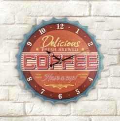 Horloge 3D En Fer Rétro Capsule De Bouteille « DELICIOUS COFFEE »