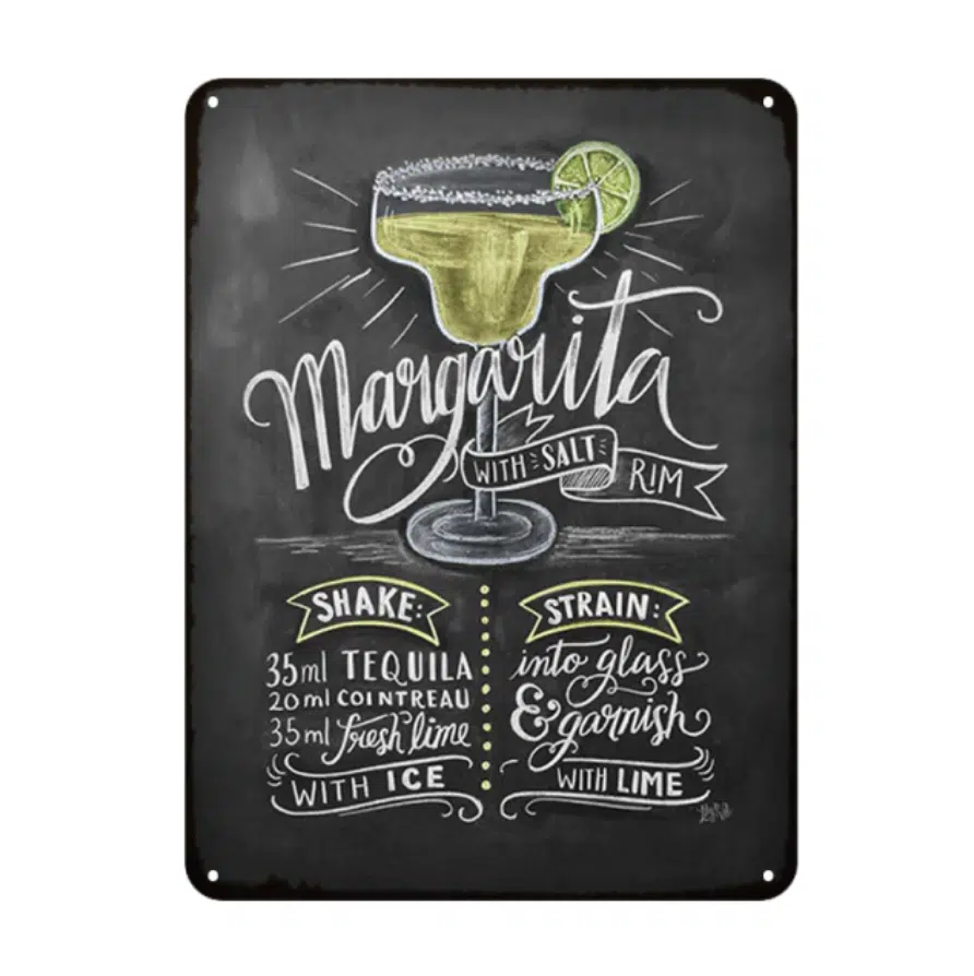 Cette étonnante plaque vintage en métal cocktail « Margarita » est définitivement une trouvaille unique qui ferait une grande décoration à n’importe quelle maison. Elle est parfaite pour tous ceux qui aiment le style rétro et ferait un ajout sophistiqué à n’importe quel coin de cuisine.