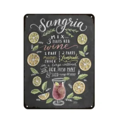 Vous allez adorer la plaque vintage en métal cocktail « Sangria » ! Un accessoire déco vintage qui sublimera votre intérieur et saura décorer votre bar, votre salon ou encore votre cuisine. Découvrez la collection complète des cocktails les plus connues. Vous pourrez préparer des cocktails maison originaux !