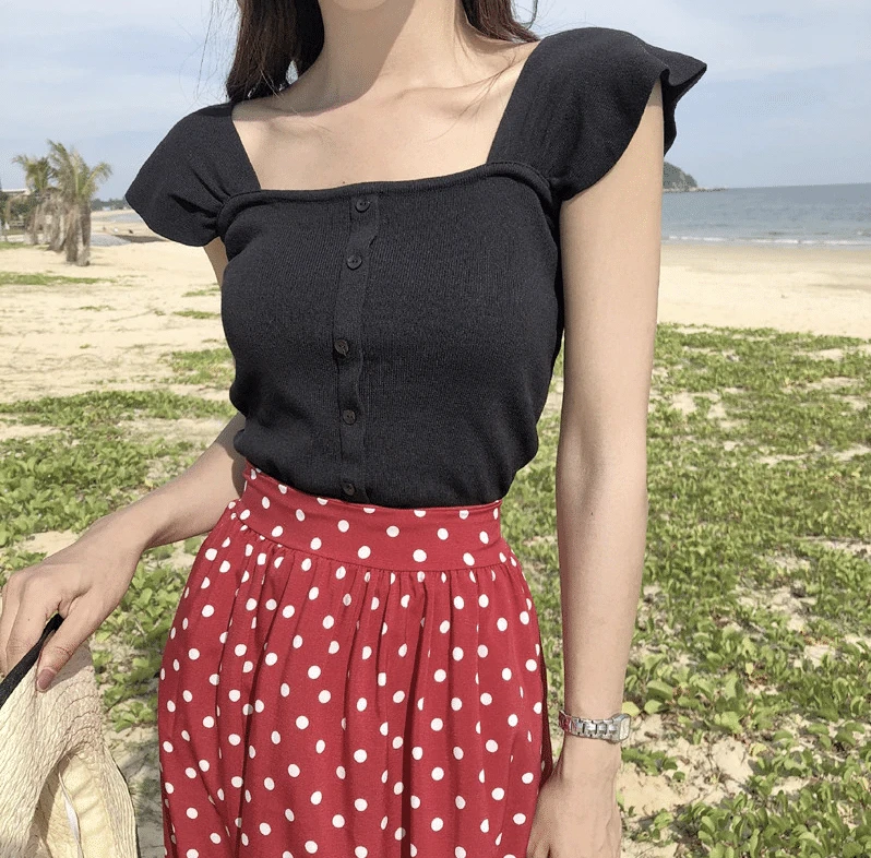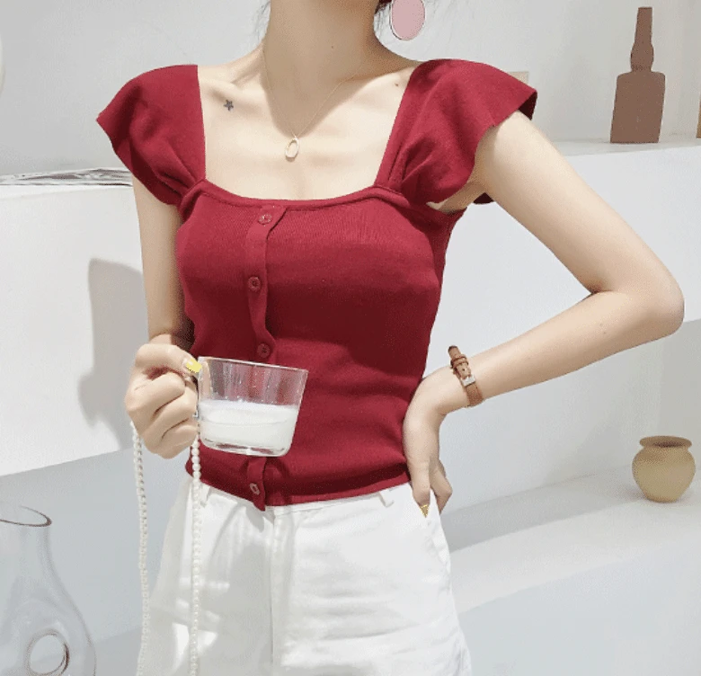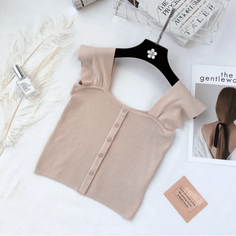 Vous allez craquer à coup sûr devant ce joli t-shirt court tricoté et à boutons vintage pour femme ! Un petit top au top qui fait la différence. Disponible en plusieurs coloris, sa matière est extensible pour un maximum de confort.