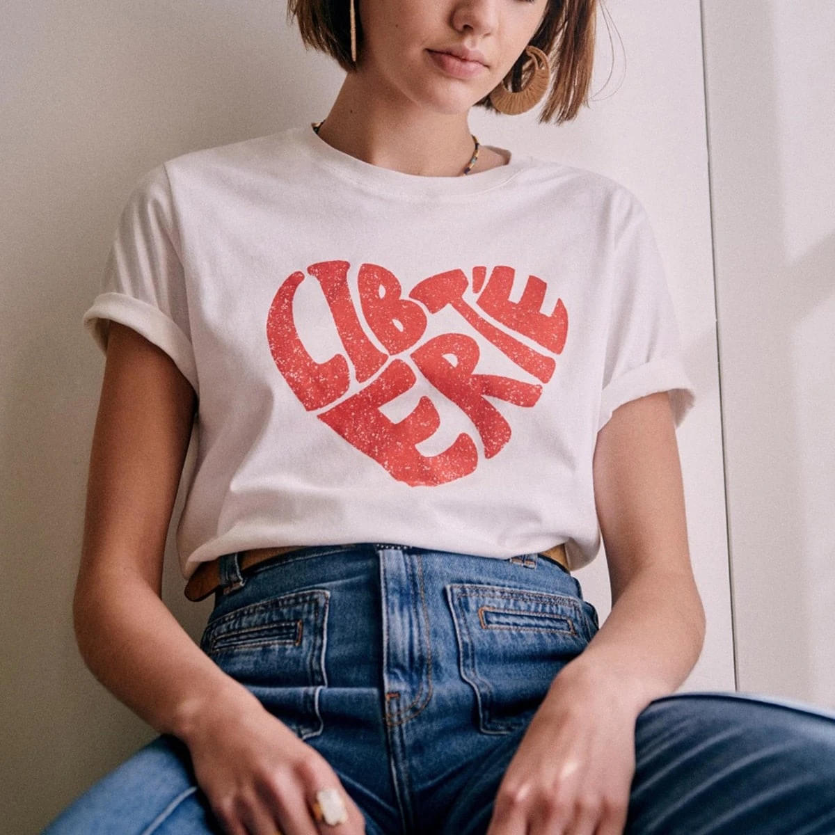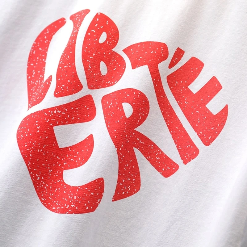 Optez pour cet adorable t-shirt « Liberté » en coton à col rond vintage pour femme. Une jolie pièce indispensable et pratique qui se porte facilement en donnant du style à votre look en un clin d’œil !