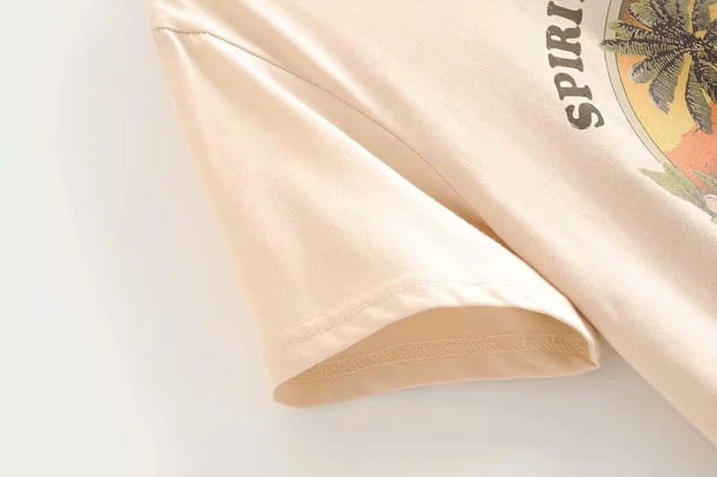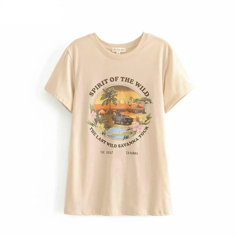 Le ton beige vintage a l’avantage d’aller avec tout ! Puisque le motif de ce t-shirt rappelle les chaudes saisons, il sera idéal à porter à la plage avec un short en jean par exemple. Léger et doux, ce t-shirt pourra également vous suivre pendant vos soirées dans vos clubs de plage préférés. Faîtes danser la savane !