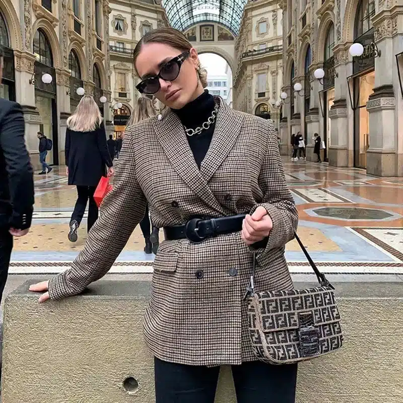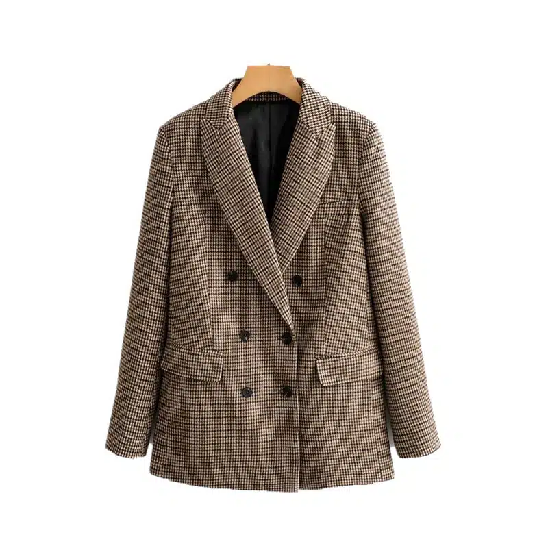 Optez pour cette sublime veste blazer vintage à carreaux pied-de-poule pour femme ! Une veste authentique et indémodable qui donne un style tendance et élégant à votre tenue. Optez pour ce blazer qui fait la différence et vous sublime.