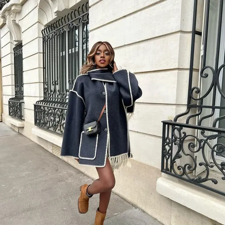 Son design oversize apporte une touche de modernité, tandis que ses détails de surpiqures contrastantes ajoutent du caractère et de l’originalité à votre tenue. Portée ouverte ou fermée, cette veste vous assure un look rétro chic en toutes occasions.