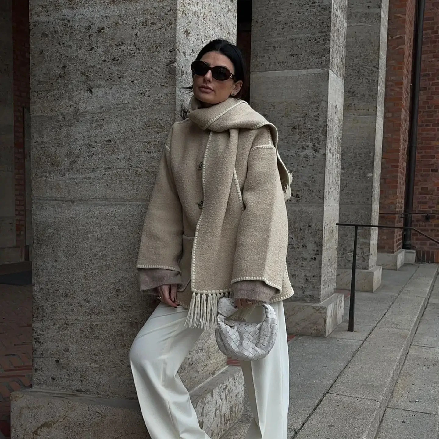 Votre tenue plonge dans l’univers vintage avec cette veste courte et son écharpe assortie. Elle est dotée d’un style intemporel et d’un confort incomparable.